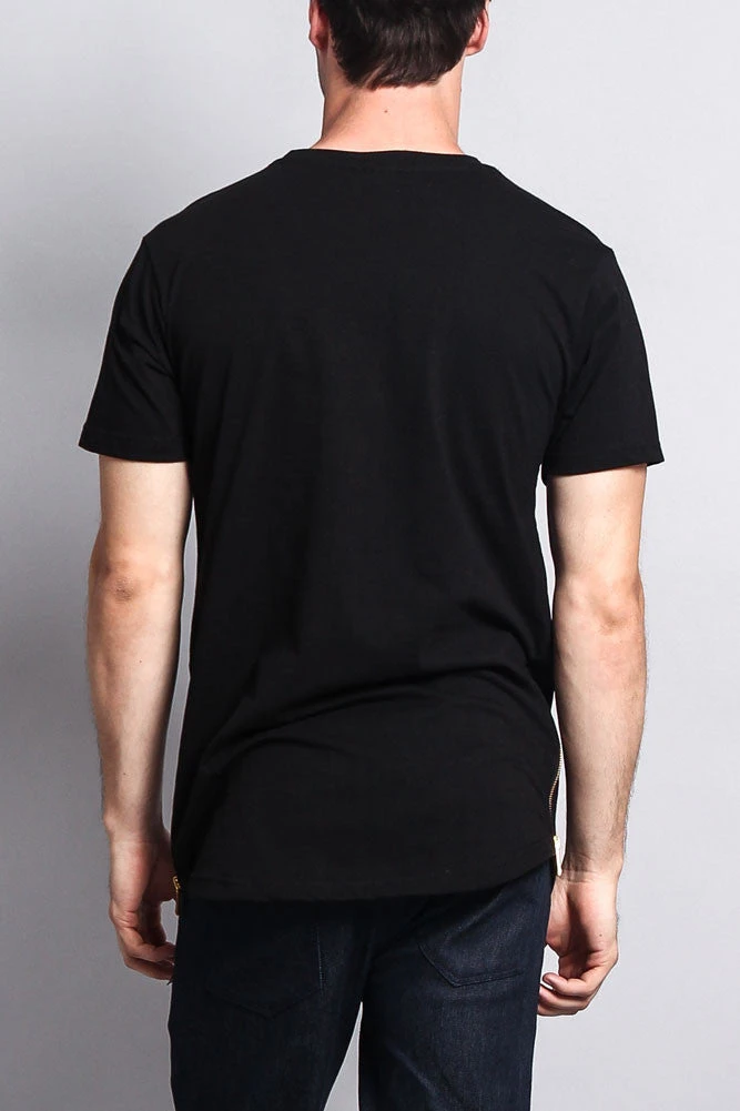 Upgrade your basic tee with this trendy 3D embossed metallic tiger graphic t-shirt. Featuring side zippers and a long length curved hem. Looks great layered under a lightweight jacket!