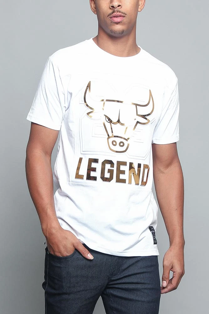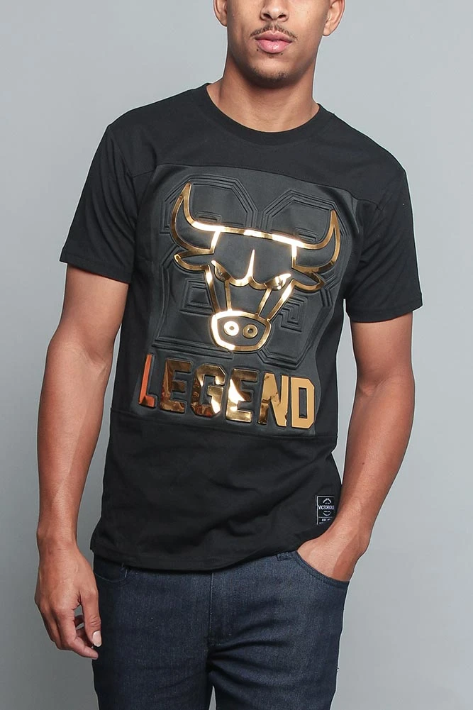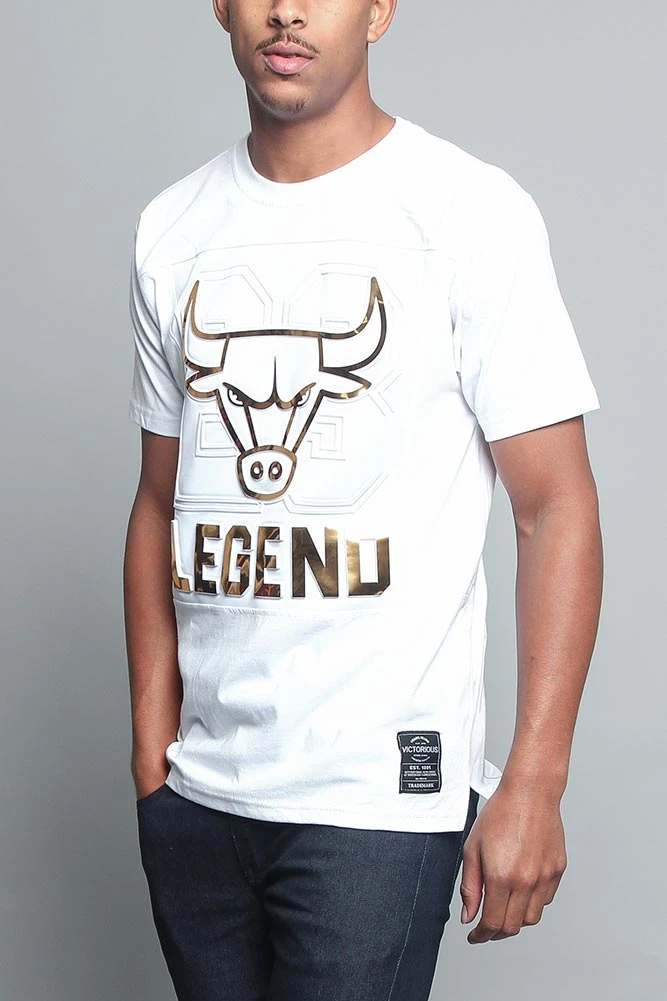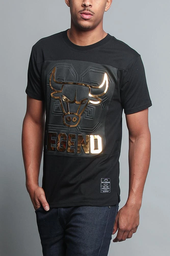 Stand out in our Bull Legend tee. This shirt features unique details with metallic letters and a bull. This tee also features an unique and subtle raised 23 design behind the bull.