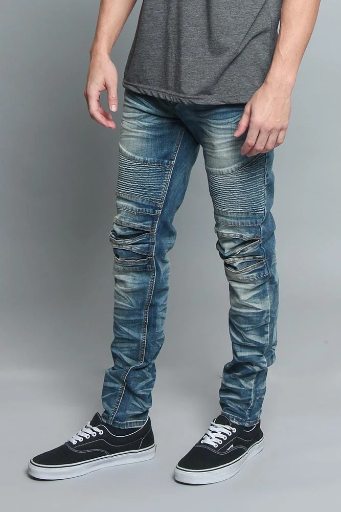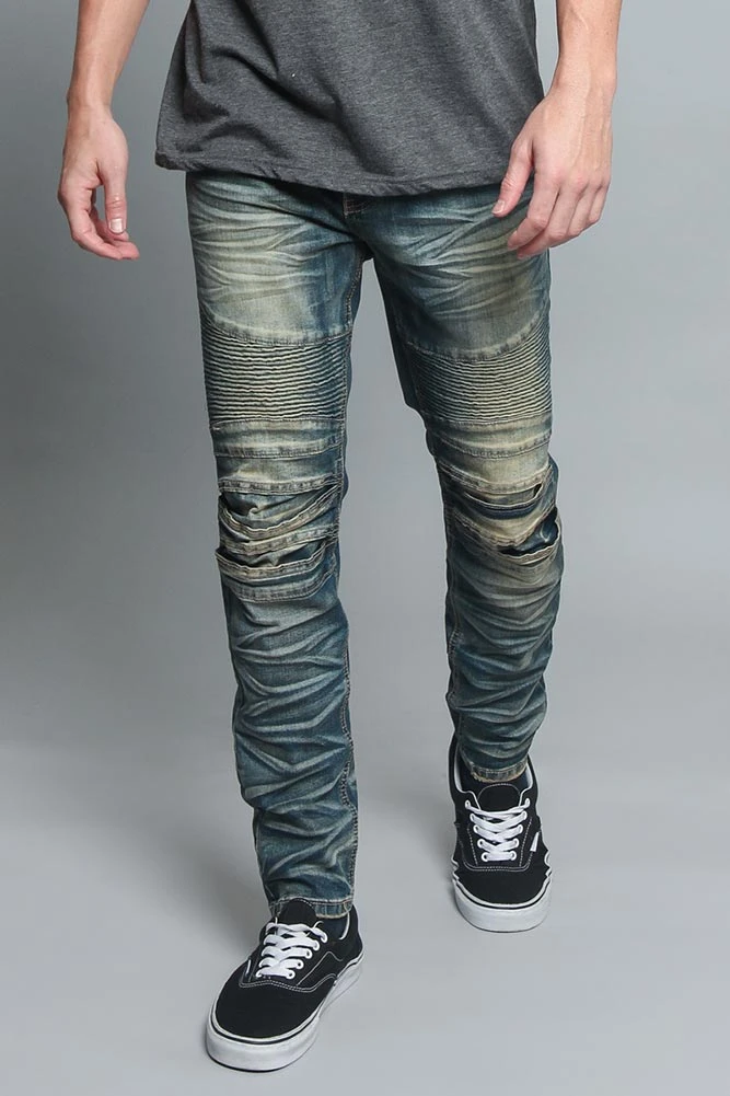 Tired of you old basic denim jeans? Try our new jeans featuring a creased design, ripped illusion, and a skinny fit to keep you warm and comfortable.