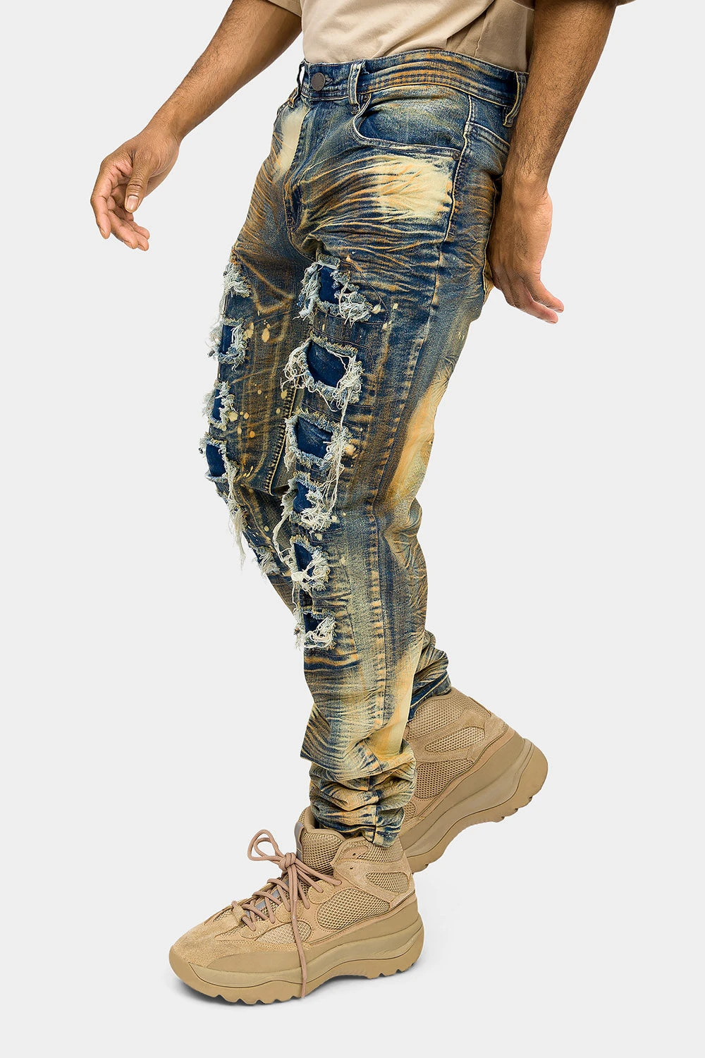 Distressed Heavy Dye Denim Jeans