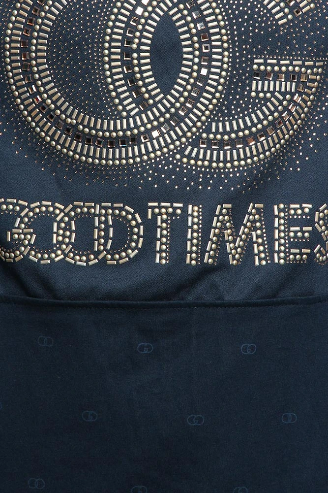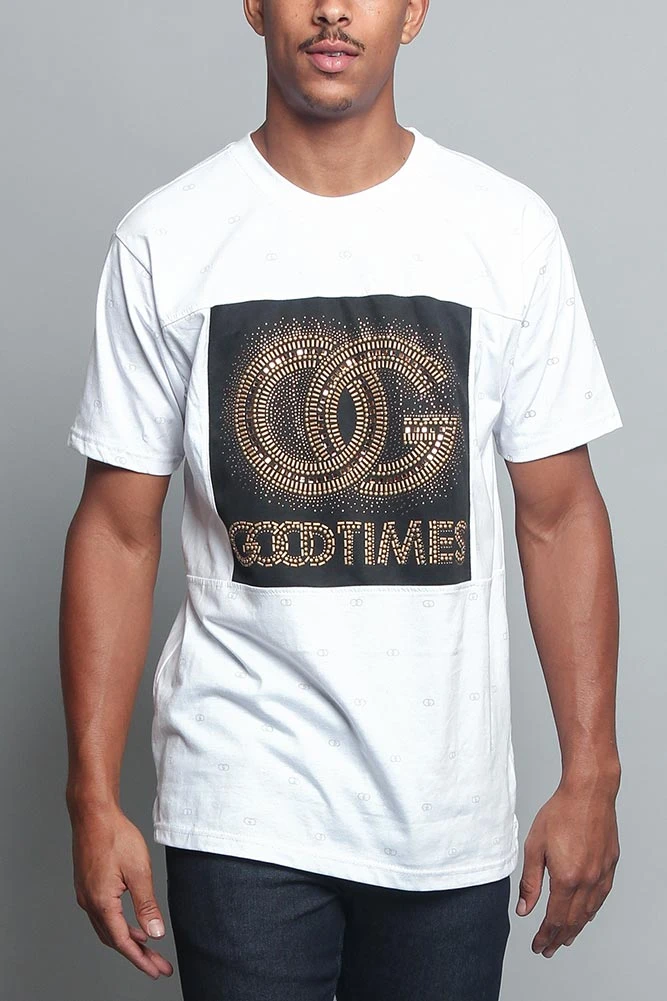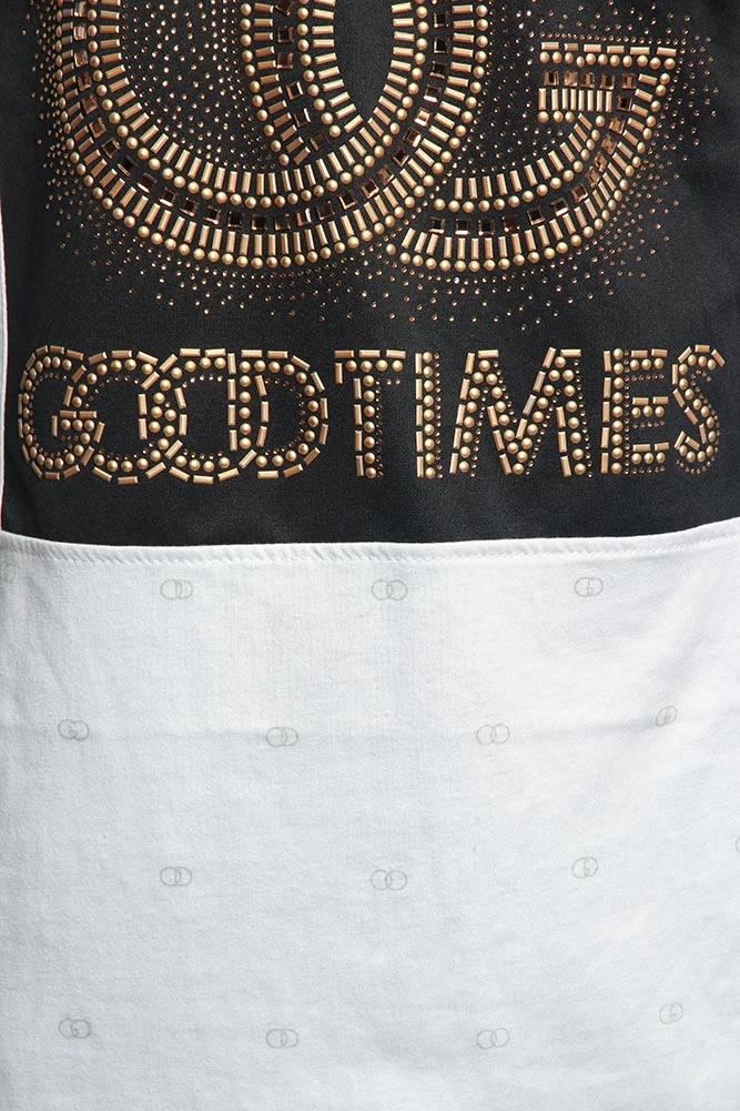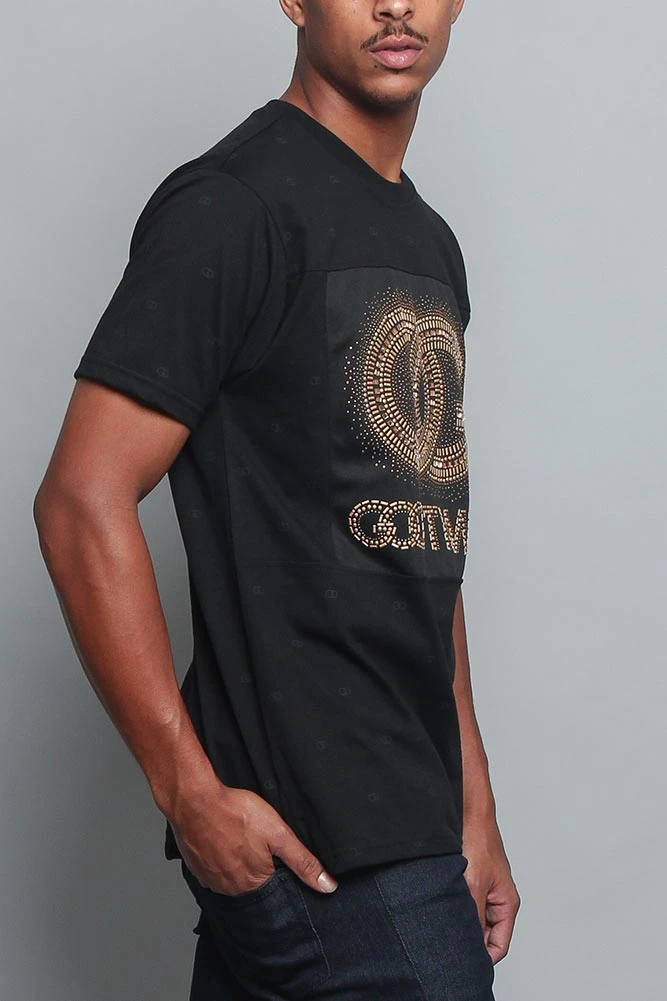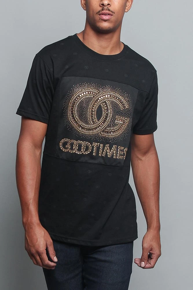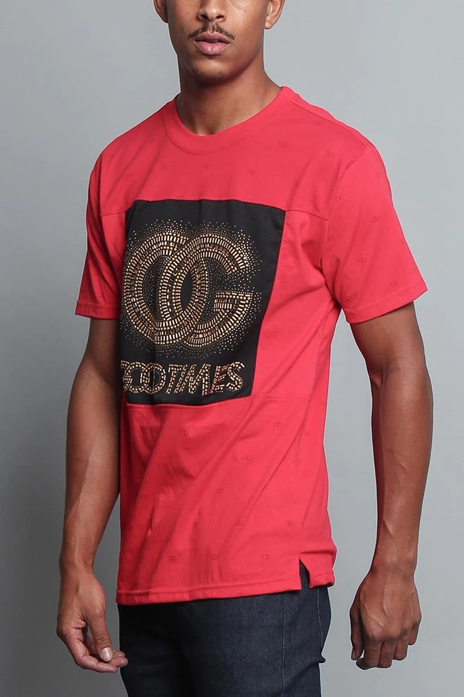 Have more than a good time in our new t-shirt. Available in three colors to compliment anyone! Featuring various size stones studded on the emblem to create an unique look.Â