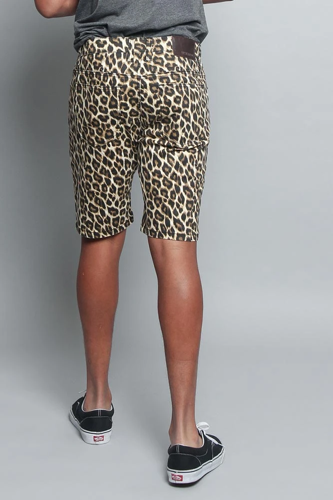 Stand out in our stylish leopard print shorts. Perfect for fitting in with the new trends, style these shorts with our solid color long length curved Hem T-Shirt to complete any look.