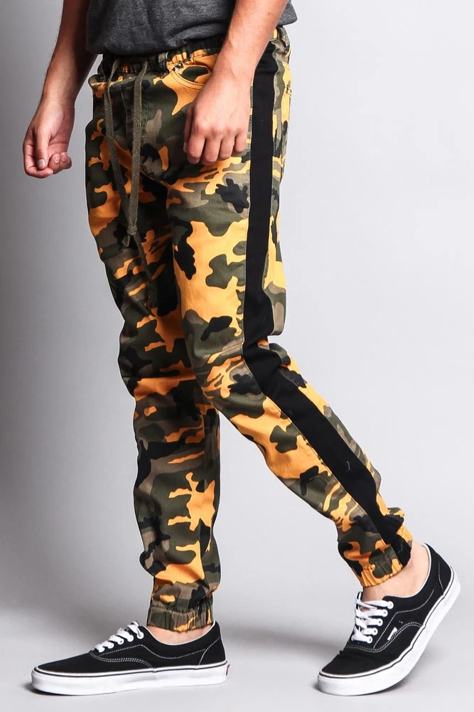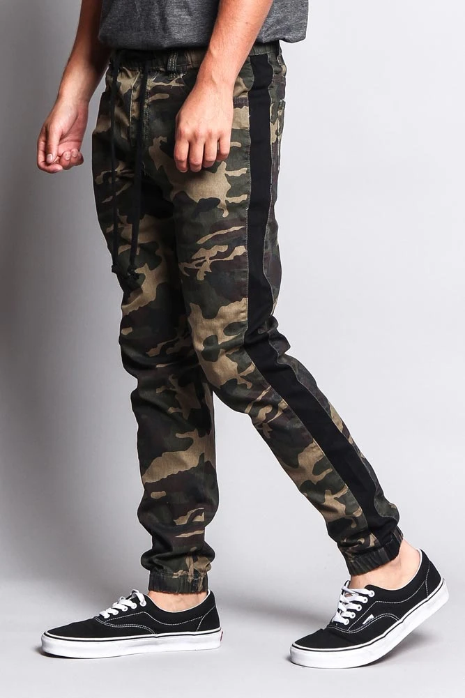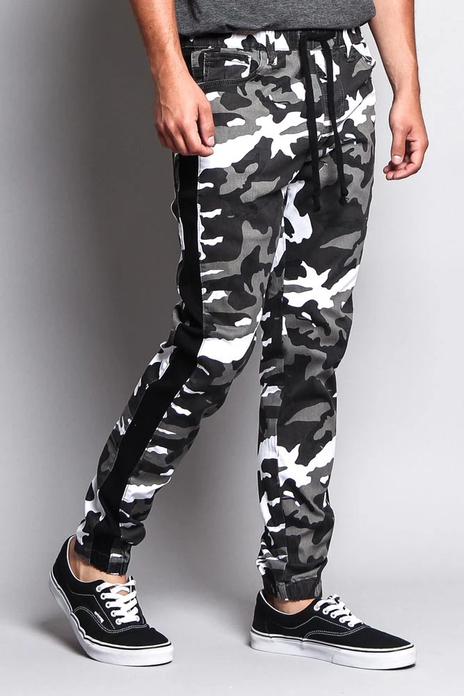 Don’t blend in, stand out with our camouflage print joggers featuring a trendy accent band on each leg to add even more style.Â