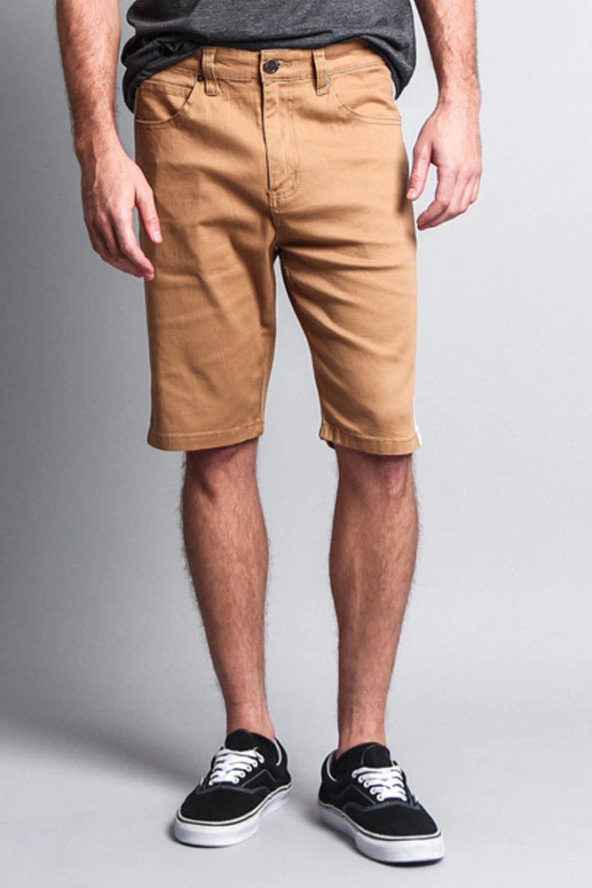 Stay in style with our jean shorts featuring a trendy accent band on each side.Â