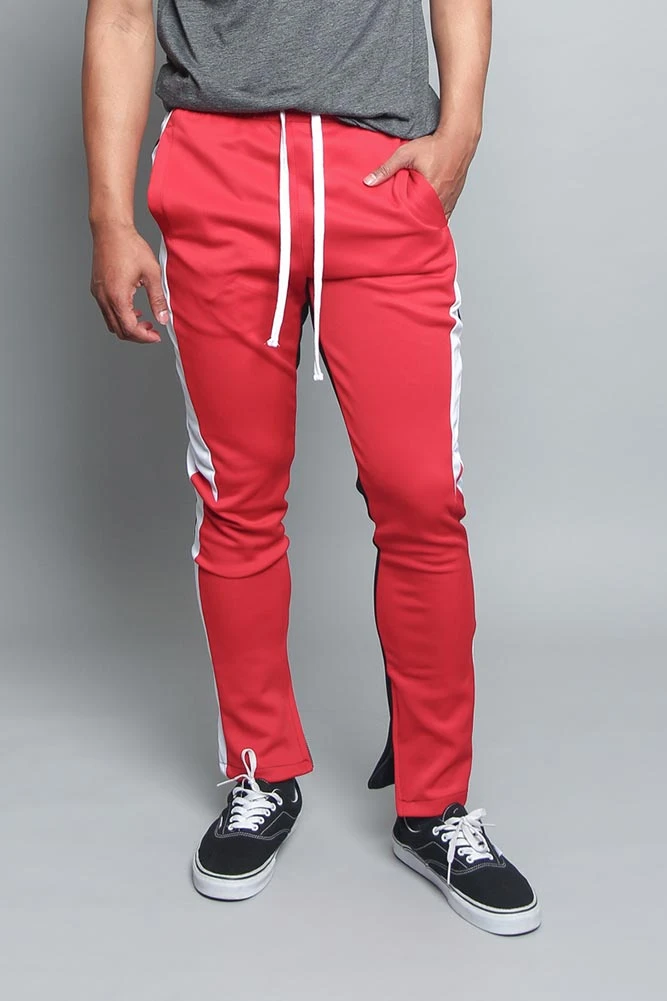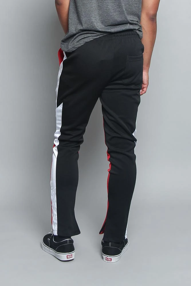 Switch up your basic track pants with our subtle Thunderbolt track pants. These super comfortable track pants look great and feel even better. Featuring three contrasting colors with an adjustable waistband and a zippered ankle for a custom fit.Â