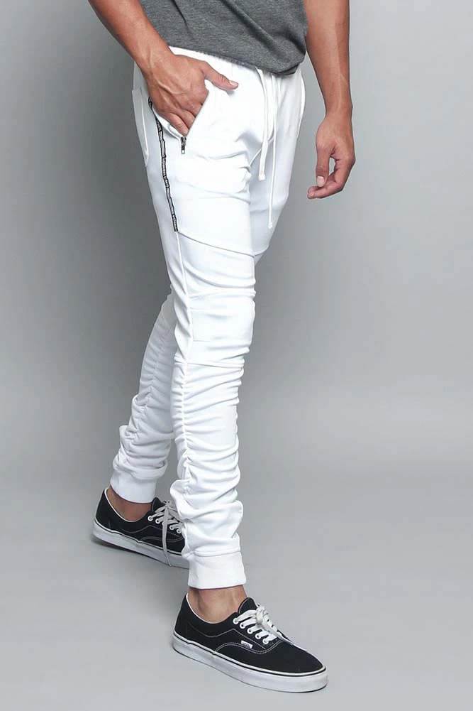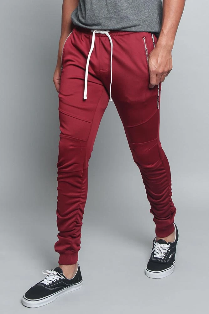 Try our new simple but unique Victorious Sport track pants. These super comfortable track pants feature a scrunched leg, a cuffed ankle, zippered pockets, and adjustable drawstrings at the waist.Â