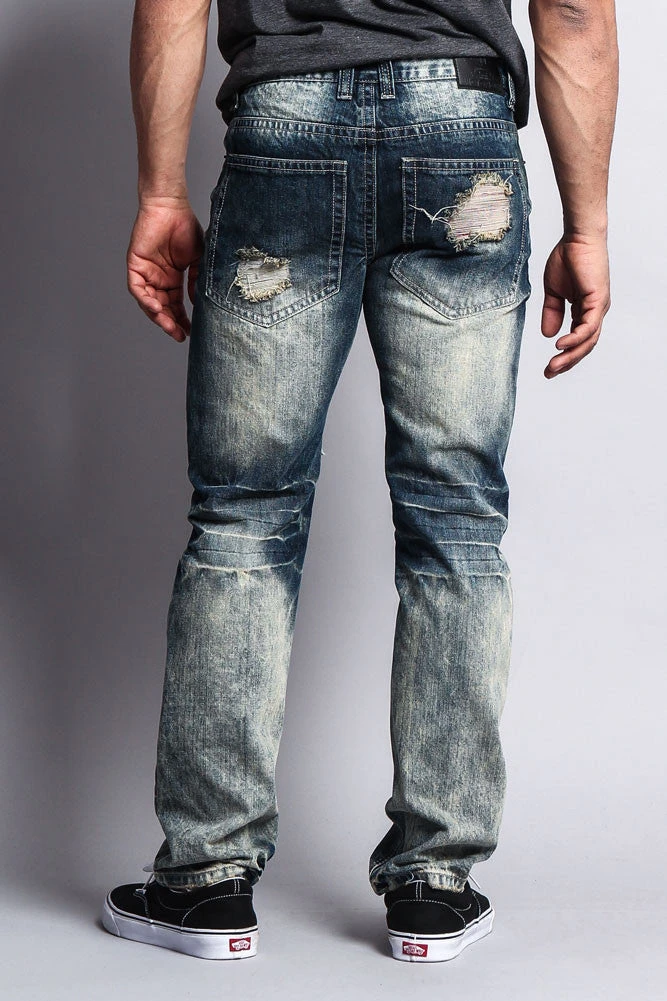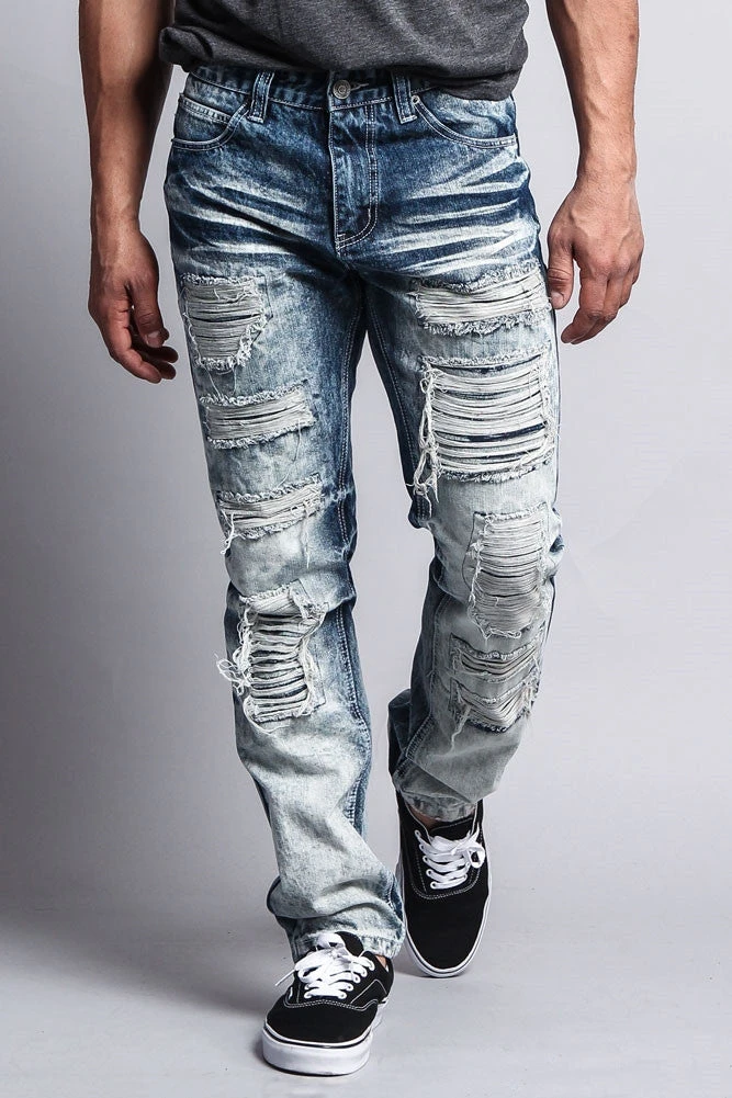 Our slim fit is perfect for the guy who’s on top of his style game, but wants a little bit extra room. Now featuring pre-ripped and washed design for that worn-in look.
